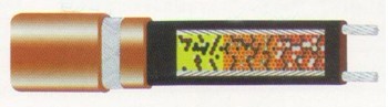 自控溫電熱帶是由導(dǎo)電聚合物和兩條平行金屬導(dǎo)線及絕緣層構(gòu)成。其特點是導(dǎo)電聚合物具有很高的電阻正溫度系數(shù)特性,且相互并聯(lián);能隨被加熱體系的溫度變化自動調(diào)節(jié)輸出功率,自動限制加熱的溫度。
