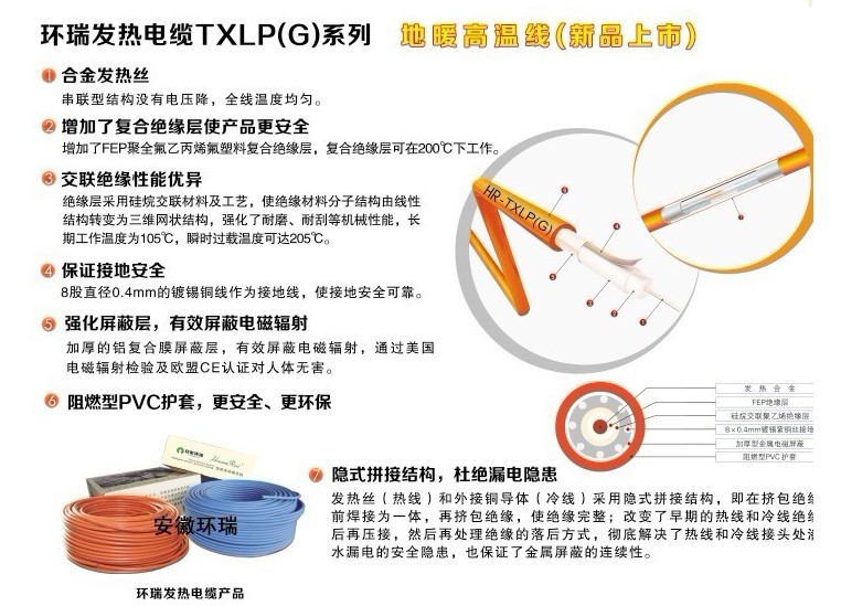 安徽環瑞畜牧養殖幼崽專用發熱電纜特點: