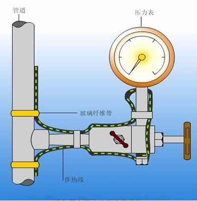 北方地區的嚴冬季節儀表及其管路的保溫間題成為工作重點。雖然大部分儀表工作環境溫度下限為一25℃,但對于管路中介質要求能夠較好地傳遞壓力, 保持介質的物理狀態很重要。連接測量蒸汽流量的差壓變送器的導壓管路內為經冷凝器冷凝下來的冷凝水,即使包裹的很厚, 在氣溫降至一7 ℃或一8℃ 時, 冷凝水會凝結成冰, 特別在管路的拐彎處凍得很嚴重。因此, 差壓信號不能傳輸到信號轉換裝置, 又由于水凝結為冰后膨脹, 會凍裂或擠破膜盒或膜片等傳感 元件使儀表損壞, 造成整個儀表系統不能正常工作。